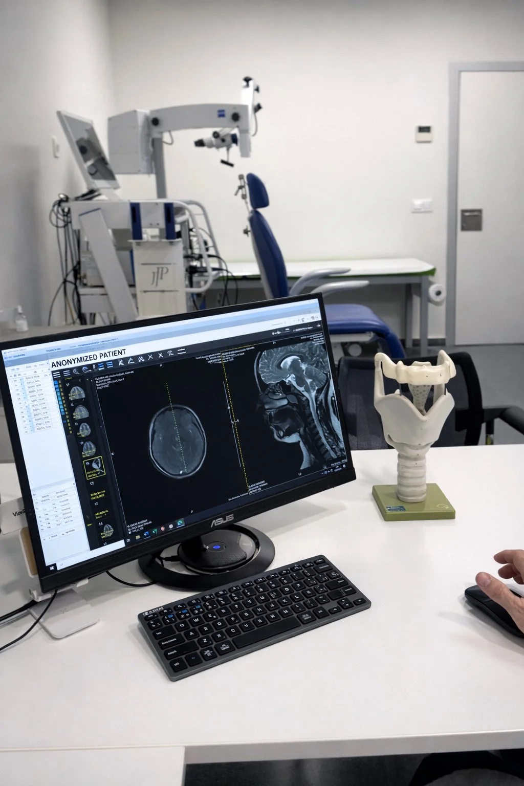 La videonasolaringoscopia es un estudio rápido y bien tolerado que permite ver en tiempo real el interior de la nariz, la garganta y la laringe (cuerdas vocales) con una cámara fina. Se realiza en consultorio, dura pocos minutos y ayuda a evaluar obstrucción nasal, ronquido/apnea, reflujo, disfonía (ronquera), tos crónica y sensación de “cuerpo extraño”, entre otros. No requiere incisiones y, en algunos casos, puede usarse anestesia tópica para mayor comodidad.